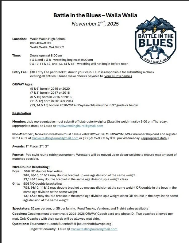 LETS GO SUPPORT OUR FRIENDS in Walla Walla, Get some Mat Time to kick off ORWAY SEASON.